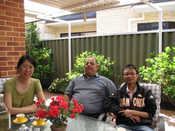 留澳學(xué)生裴非(右一)于寄宿家庭在一起