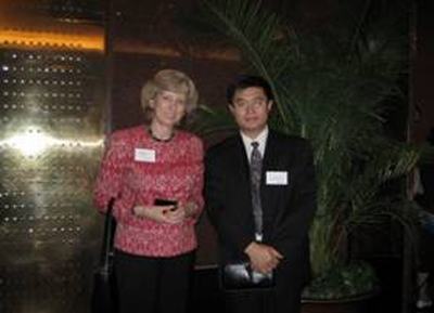 澳大利亞駐華大使館教育參贊韓柏靈女士與山西華澳商貿職業(yè)學院理事長劉耀國先生合影并祝賀華澳學院與西澳州政府SWAN TAFE學院合作辦學成功